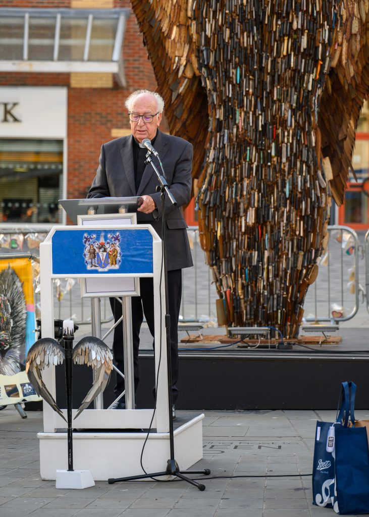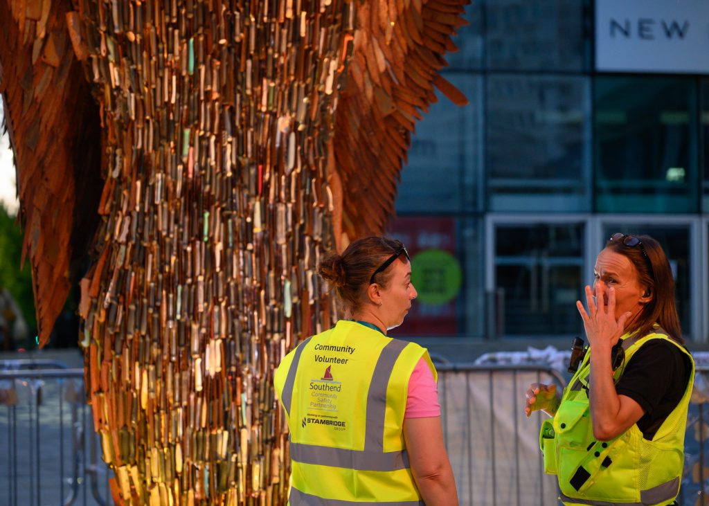 The Knife Angel’s visit to Southend-on-Sea culminated in a powerful closing ceremony, marked by a Walk of Peace and Remembrance led by John Simmons, Chair of Southend Street Pastors, and David Webster representing Love Southend, an inter-church network inspired by God’s love and dedicated to the well-being of the city’s citizens.