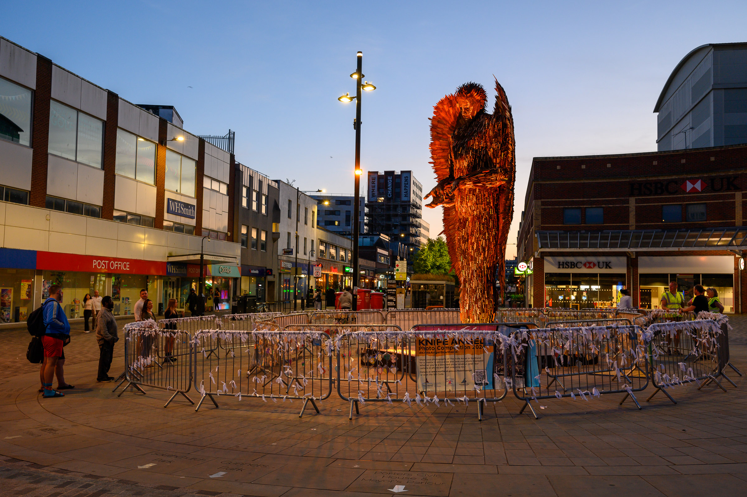As the march concluded, the sight of a large crowd awaiting the participants was a testament to the community’s engagement. A particularly poignant moment was the placement of numerous nightlights at the foot of the Knife Angel sculpture by police officers, members of the community and leaders in the city, symbolising a collective stand against violence and a commitment to peace.